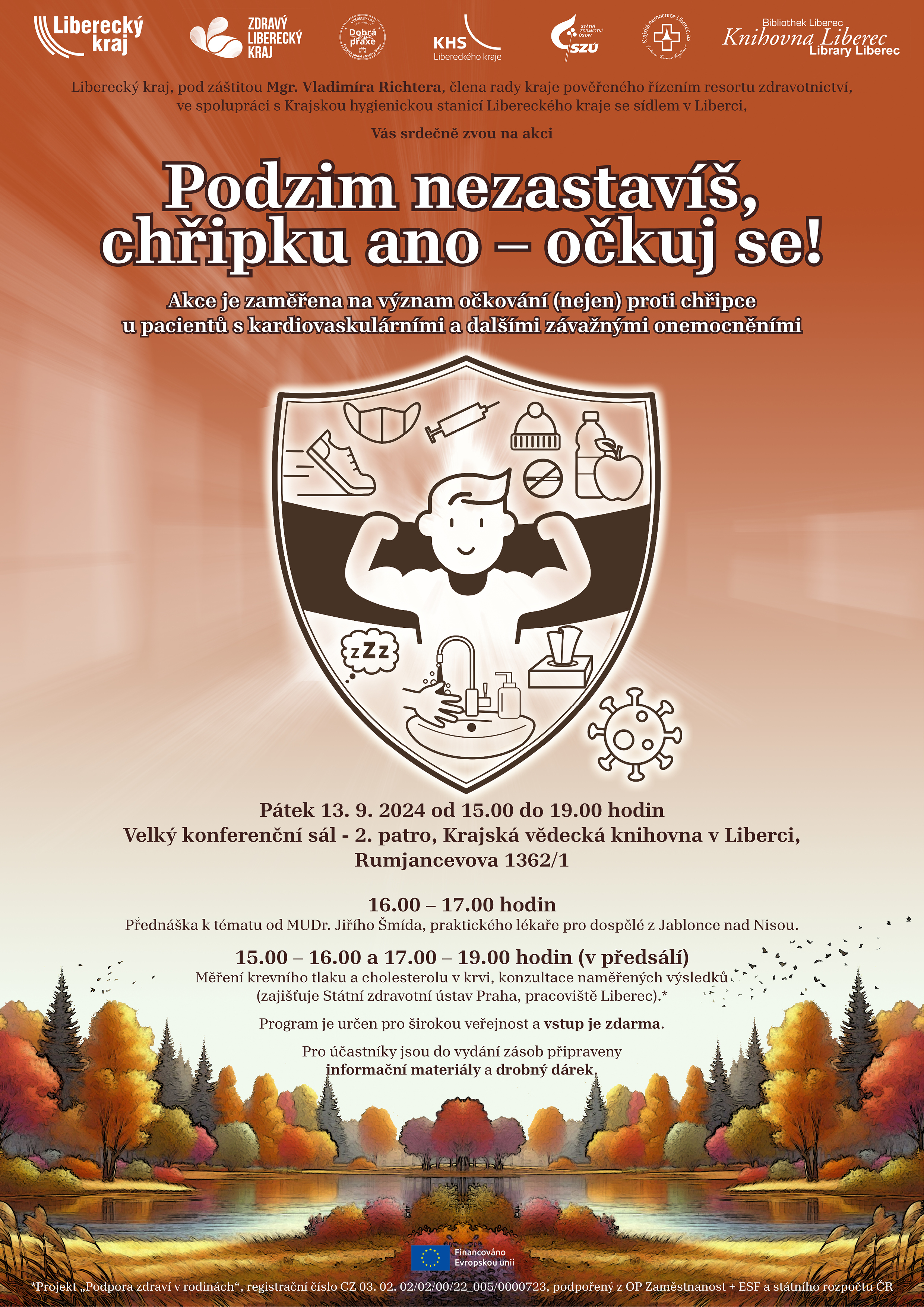 Se začátkem podzimu je potřeba připravit se na chřipkovou sezonu. Odbor zdravotnictví Krajského úřadu Libereckého kraje ve spolupráci s Krajskou hygienickou stanicí Libereckého kraje, libereckým pracovištěm Státního zdravotního ústavu Praha a lékaři připravil zdravotně preventivní akci s názvem Podzim nezastavíš, chřipku ano – očkuj se! Akce se bude konat v pátek 13. září 2024 v Krajské vědecké knihovně v Liberci.